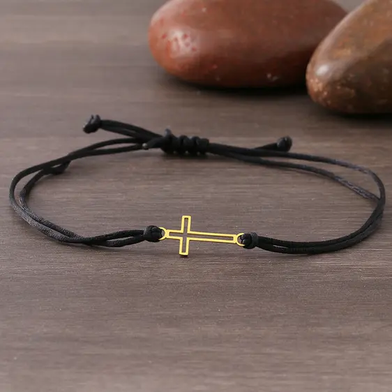 Bransoletka na Czarnym Sznurku z Krzyżykiem – Minimalizm i Styl