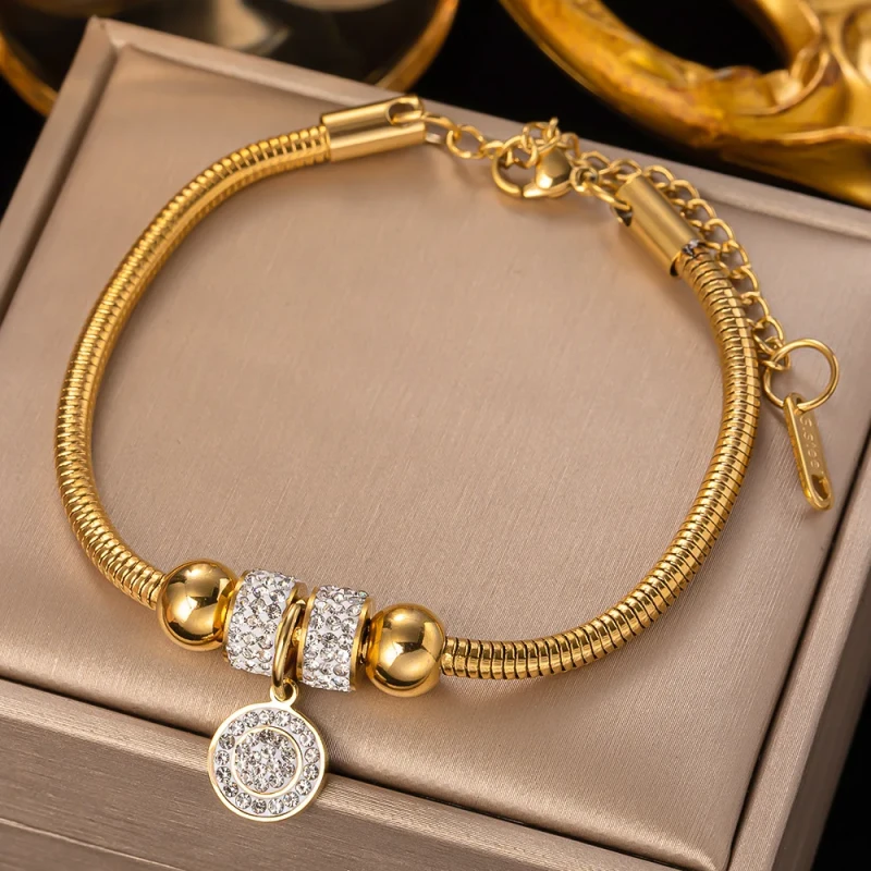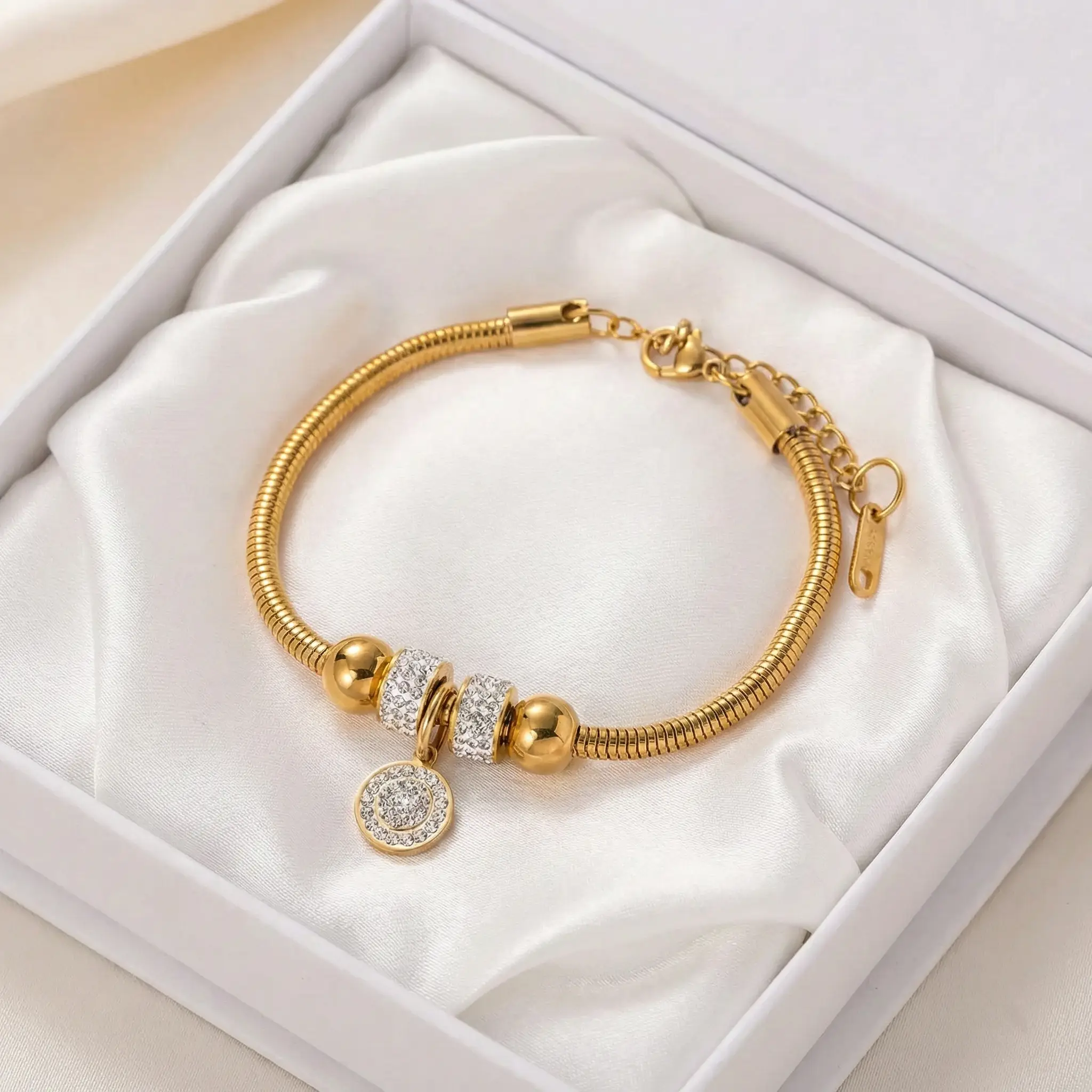 Złota Bransoletka Pandorka z Cyrkoniowym Kołem – Stal Chirurgiczna