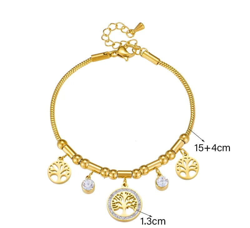 Złota Bransoletka Modułowa Drzewko Szczęścia – Stal Szlachetna
