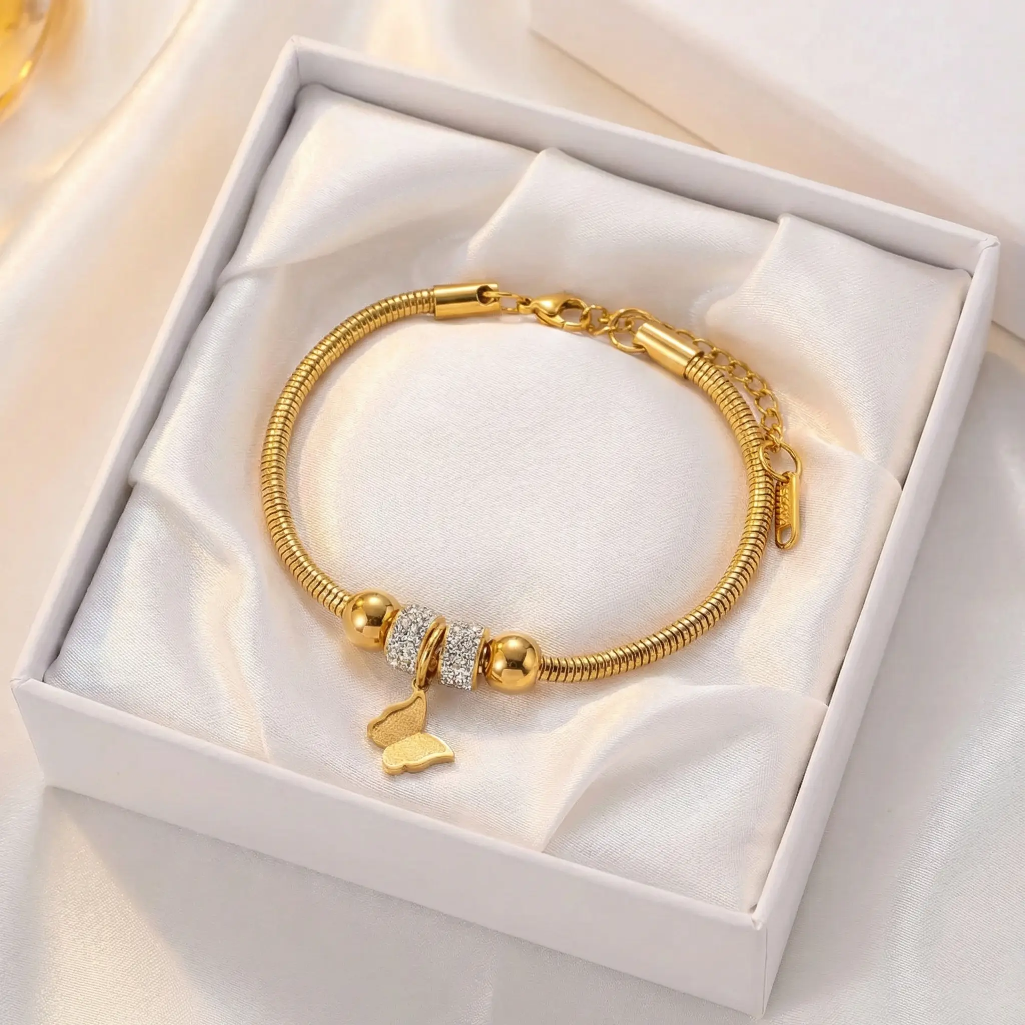 Złota Bransoletka Pandorka z Motylem – Stal Chirurgiczna