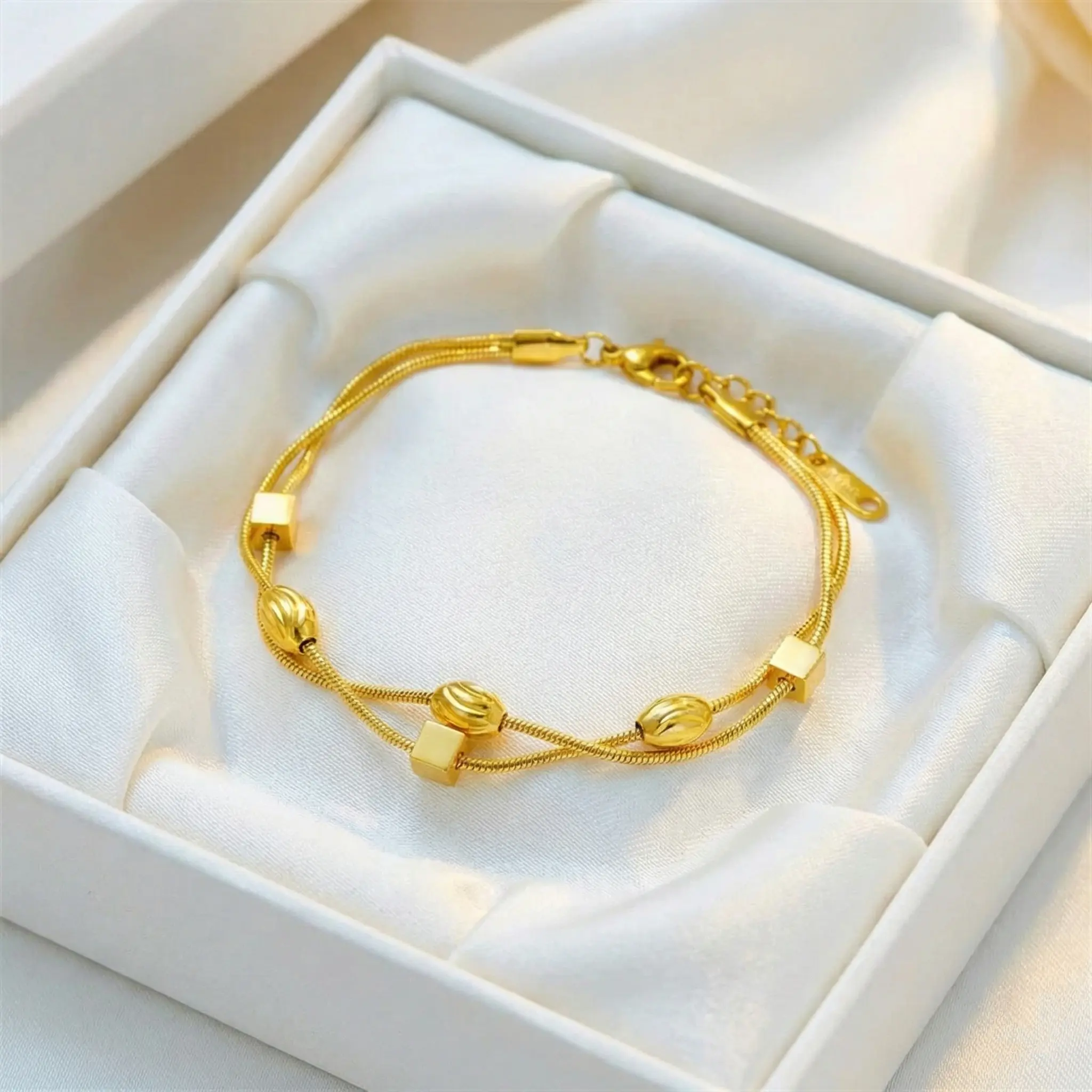 Złota Bransoletka Podwójna Linka – Stal Chirurgiczna