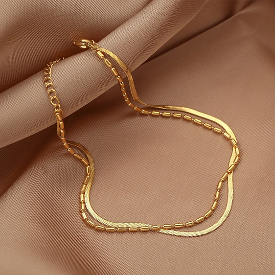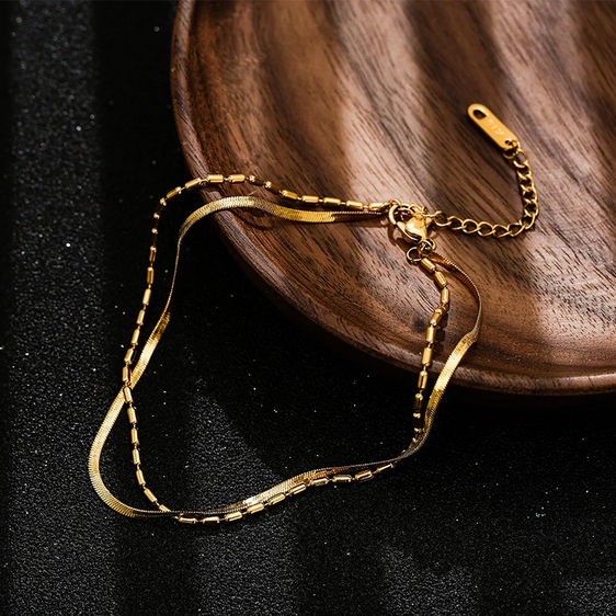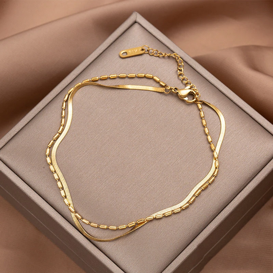 Złota Bransoletka na Kostkę Podwójna Żmijka – Stal Szlachetna