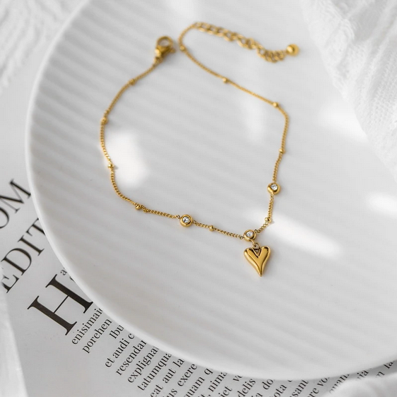 Złota Bransoletka na Kostkę Serduszko i Cyrkonie – Stal Szlachetna