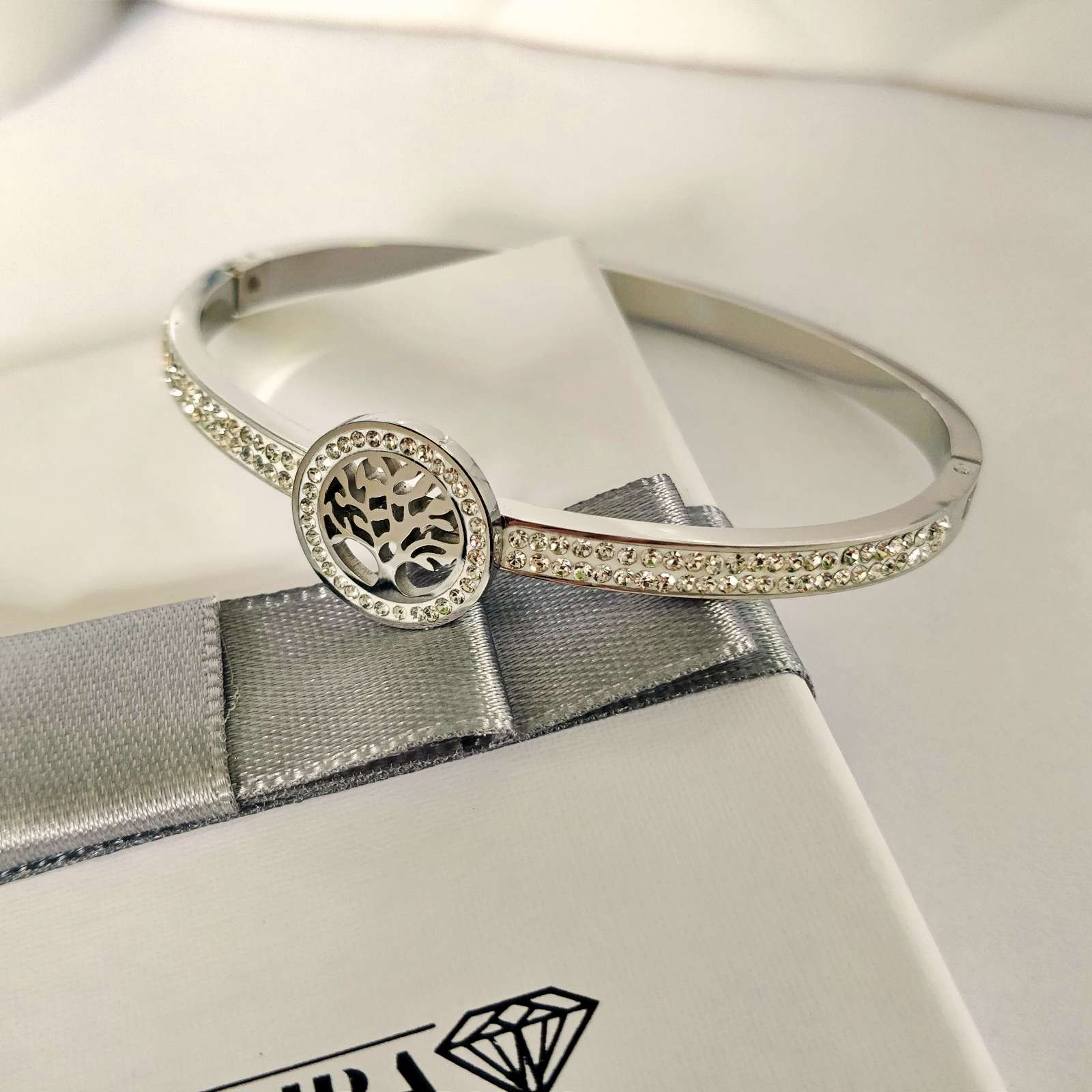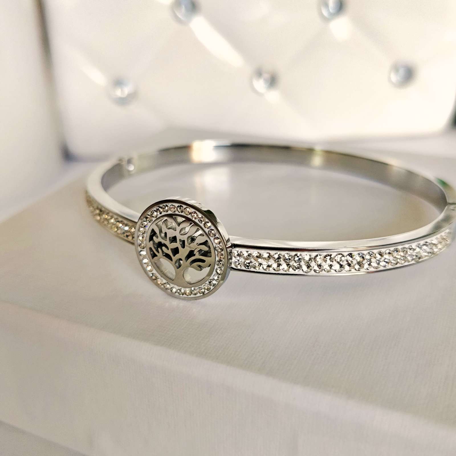 Srebrna Sztywna Bransoletka Drzewko Szczęścia Cyrkonie – Stal Szlachetna