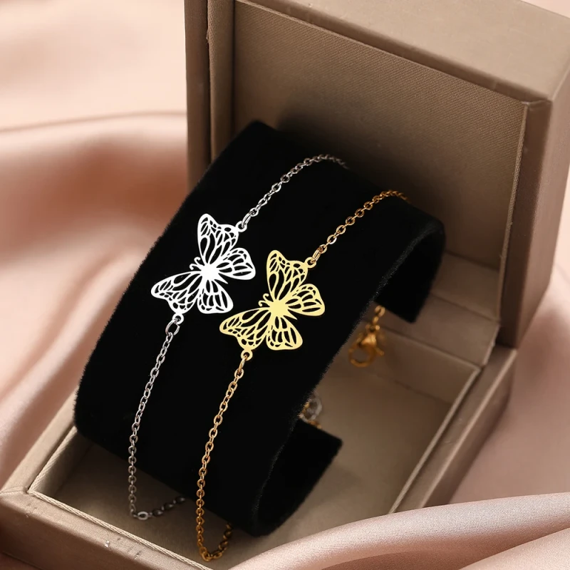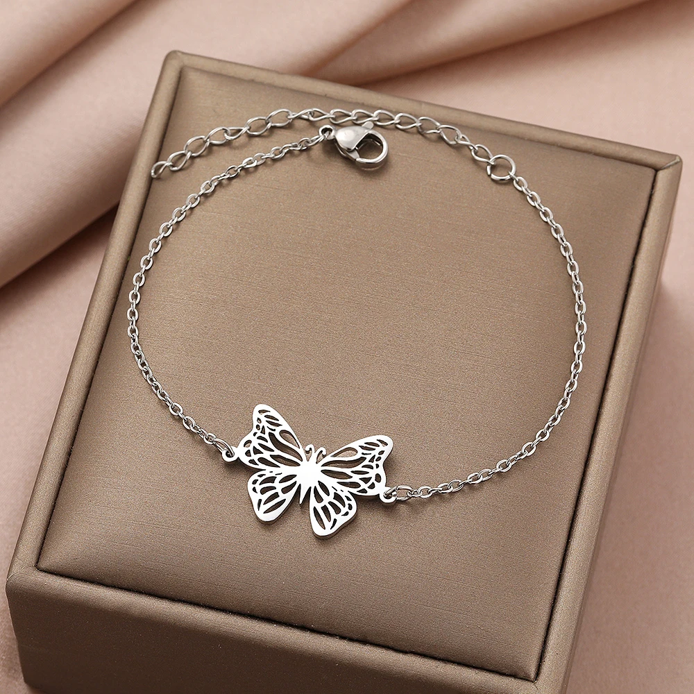 Bransoletka ze stali nierdzewnej z motylem – elegancja na co dzień