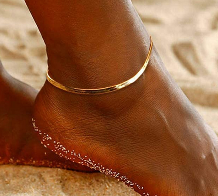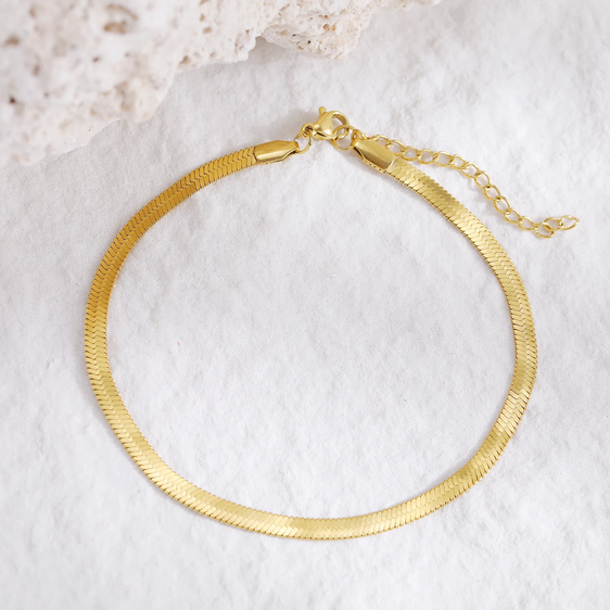 Złota Bransoletka na Kostkę Płaska Żmijka – Stal Szlachetna