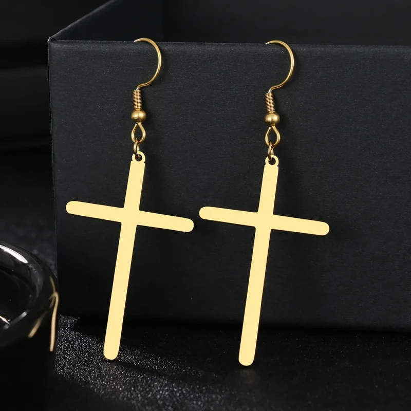 Kolczyki Wiszące Duże Krzyże – Złote lub Srebrne – Stal Chirurgiczna