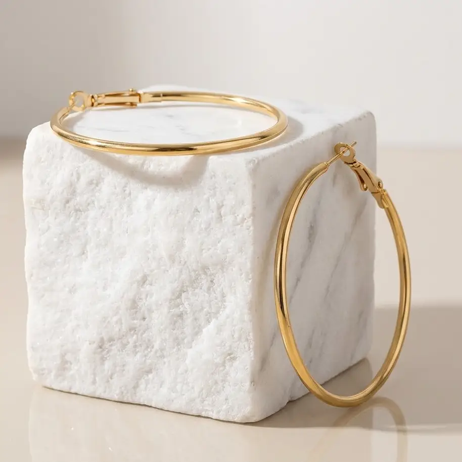 Wykonane z trwałej stali chirurgicznej 316L, łączą w sobie luksusowy wygląd złota z niesamowitą odpornością na uszkodzenia. Konstrukcja oparta na pustej w środku rurce sprawia, że nawet największe modele (8 cm) są zaskakująco lekkie i nie obciążają ucha, co pozwala nosić je komfortowo przez cały dzień.