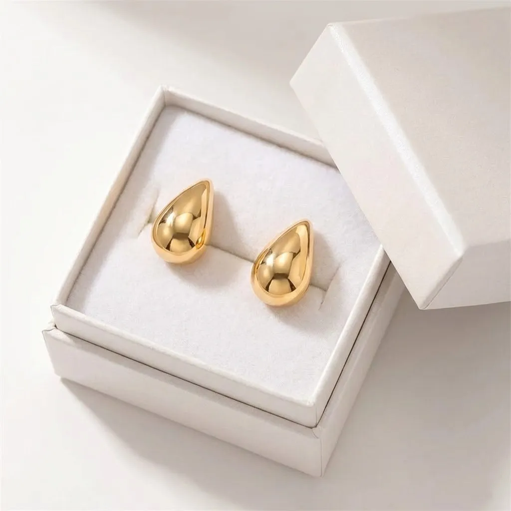 Absolutny hit sezonu. Te przepiękne kolczyki w kształcie kropli wody (łezki) to kwintesencja nowoczesnej elegancji. Ich charakterystyczny, obły i "pękaty" kształt (nawiązujący do stylu Bottega) sprawia, że są one jednym z najbardziej pożądanych dodatków modowych. Gładka, lśniąca powierzchnia idealnie odbija światło, rozświetlając twarz i dodając każdej stylizacji luksusowego wykończenia.