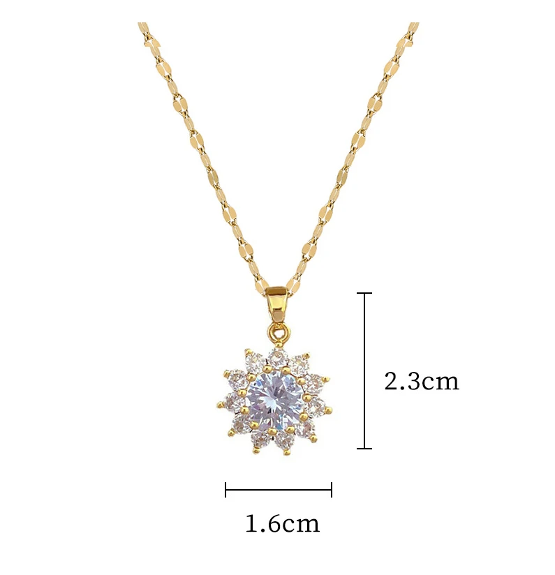Złoty Komplet Biżuterii Kryształowy Kwiat z Cyrkoniami – Stal Chirurgiczna