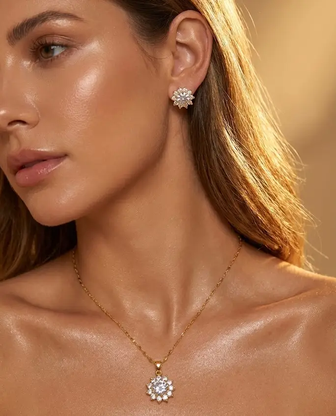 - Niesamowity blask: Dzięki dużej liczbie fasetowanych kamieni, biżuteria przyciąga wzrok i rozświetla twarz.