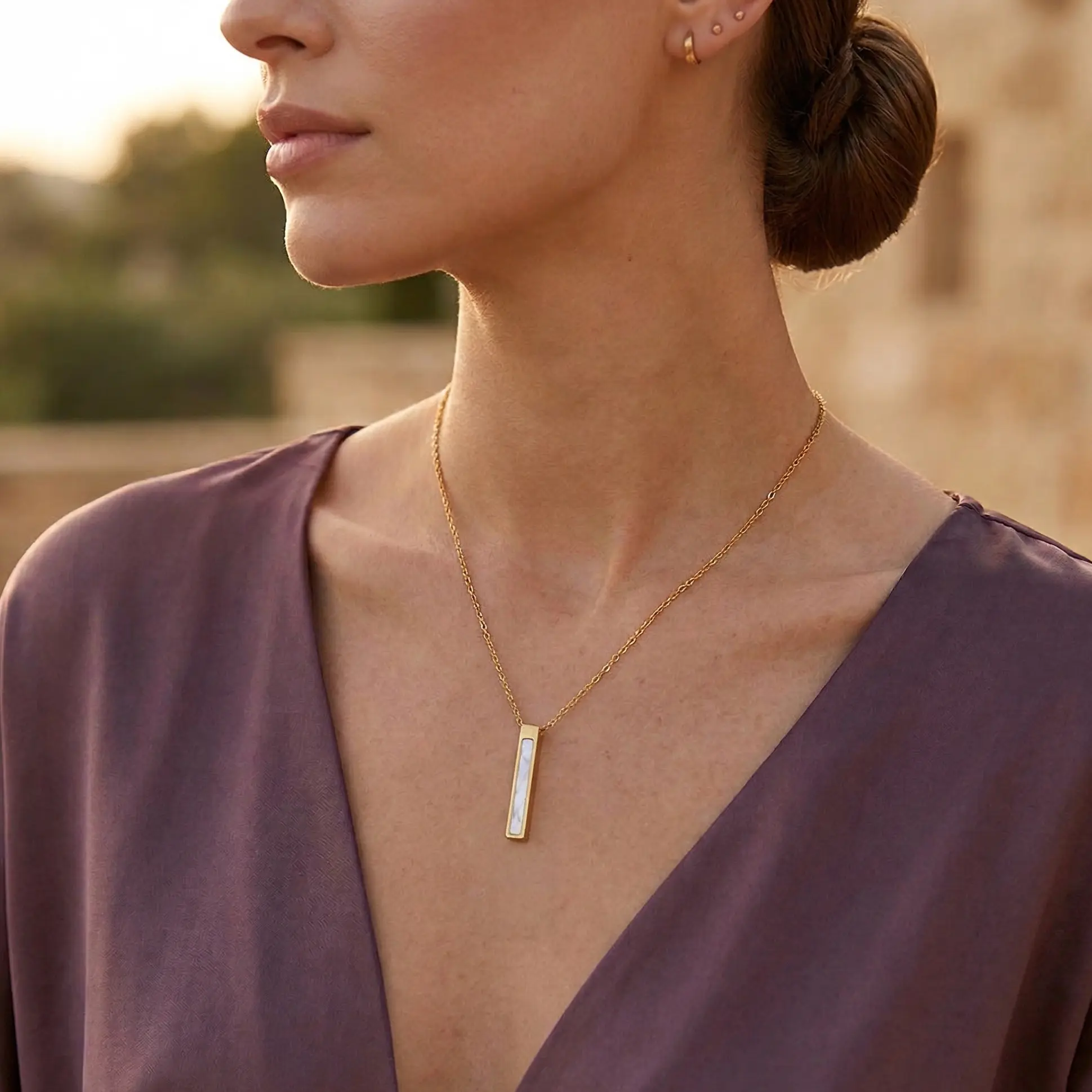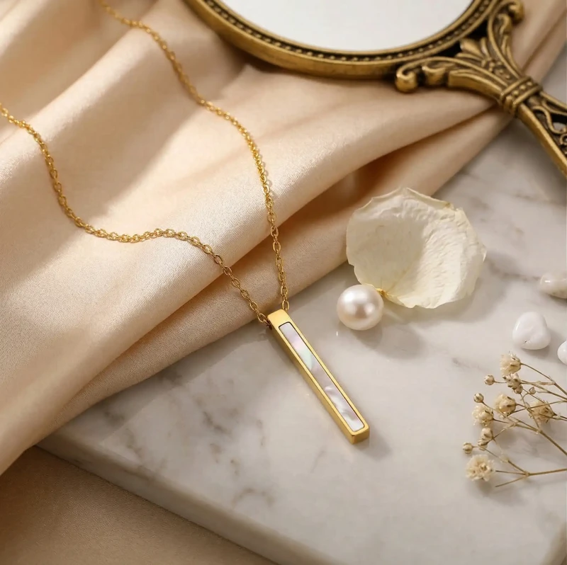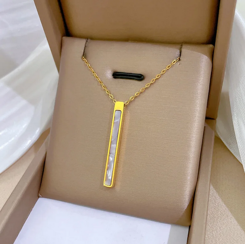 Naszyjnik Złoty Słupek z Masą Perłową – Stal Chirurgiczna