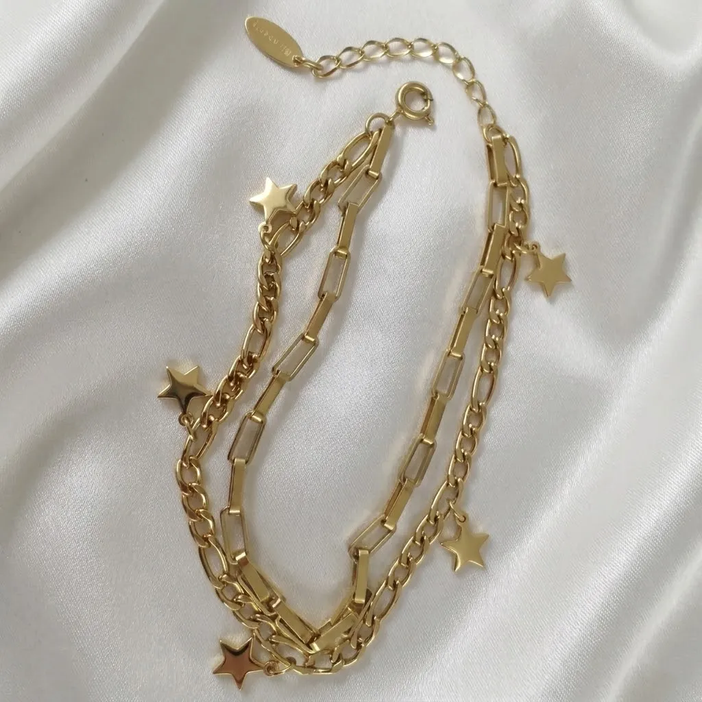 Złota Bransoletka Podwójna Gwiazdki Splot Spinaczowy – Stal Szlachetna