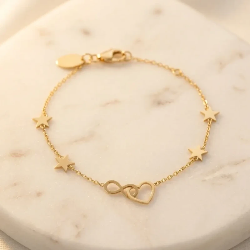 Oceń Złota Bransoletka Serce Nieskończoność i Gwiazdki – Stal Szlachetna i pomóż innym w wyborze.