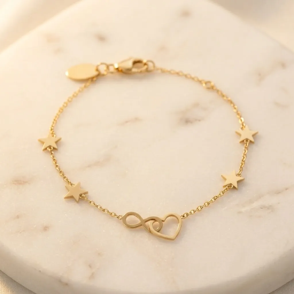Złota Bransoletka Serce Nieskończoność i Gwiazdki – Stal Szlachetna