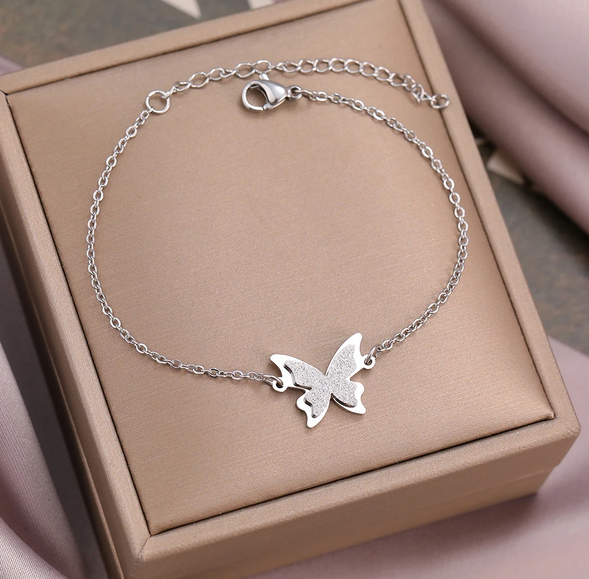 Stwórz idealny komplet: Dobierz do tej bransoletki delikatny naszyjnik celebrytkę z motywem motyla z naszej kolekcji ze stali szlachetnej (w wersji złotej lub srebrnej) i stwórz spójny, niezwykle kobiecy zestaw!
