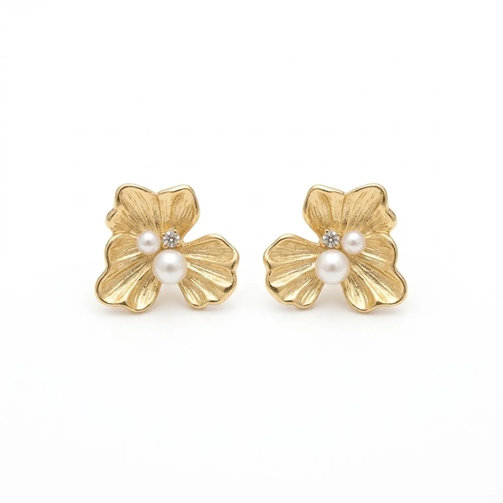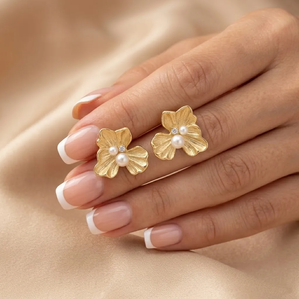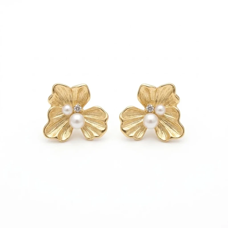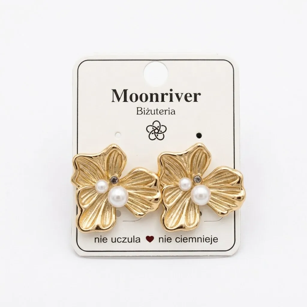 Ponadczasowa elegancja z nutą romantycznego stylu vintage. Te zjawiskowe, złote kolczyki ze stali chirurgicznej to dodatek, który natychmiast dodaje klasy każdej stylizacji. Ich forma to piękny, trójpłatkowy kwiat o rzeźbionej, ryflowanej fakturze, która wspaniale załamuje światło. W centrum kompozycji umieszczono niezwykle kobiece detale: dwie perły różnej wielkości oraz subtelną, lśniącą cyrkonię. To połączenie sprawia, że biżuteria wygląda niezwykle luksusowo i szykownie.