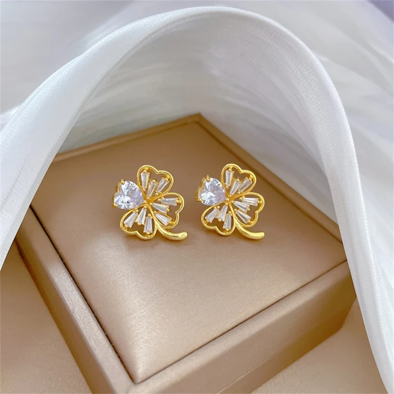 Złote Kolczyki Koniczynka PREMIUM - Stal Chirurgiczna