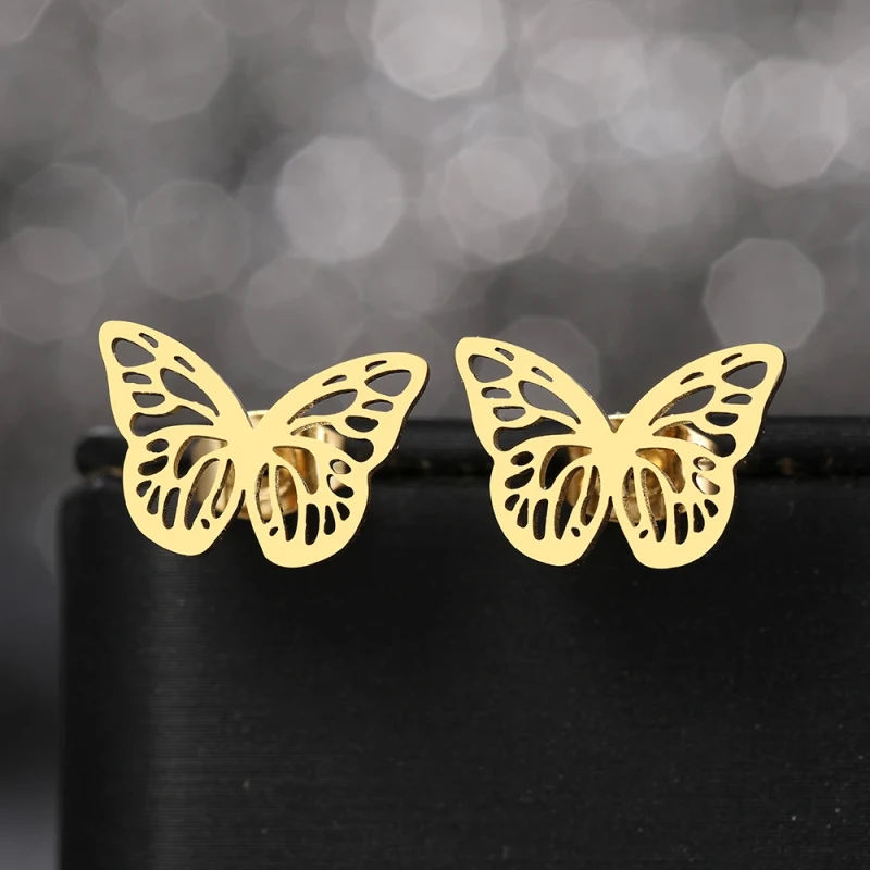 Złote / srebrne kolczyki motylki - stal chirurgiczna