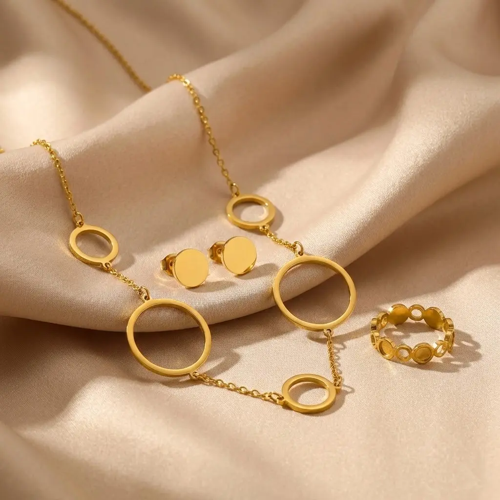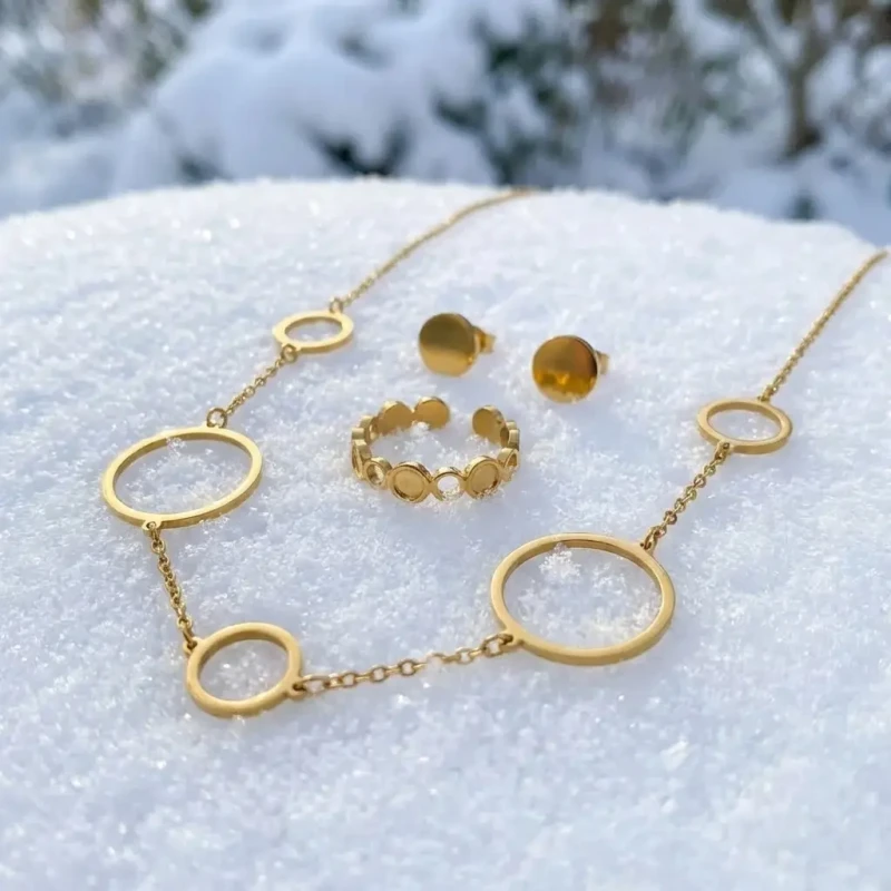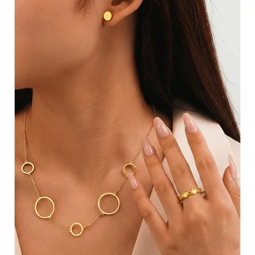 Złoty Komplet Biżuterii 3w1 Geometryczne Koła – Stal Chirurgiczna