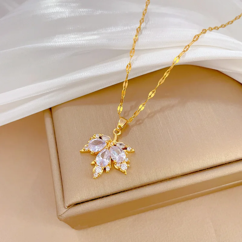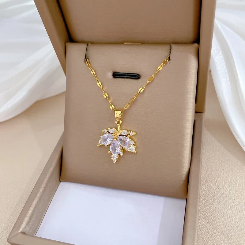 Złoty Naszyjnik Ślubny Kryształowy Liść – Stal Chirurgiczna