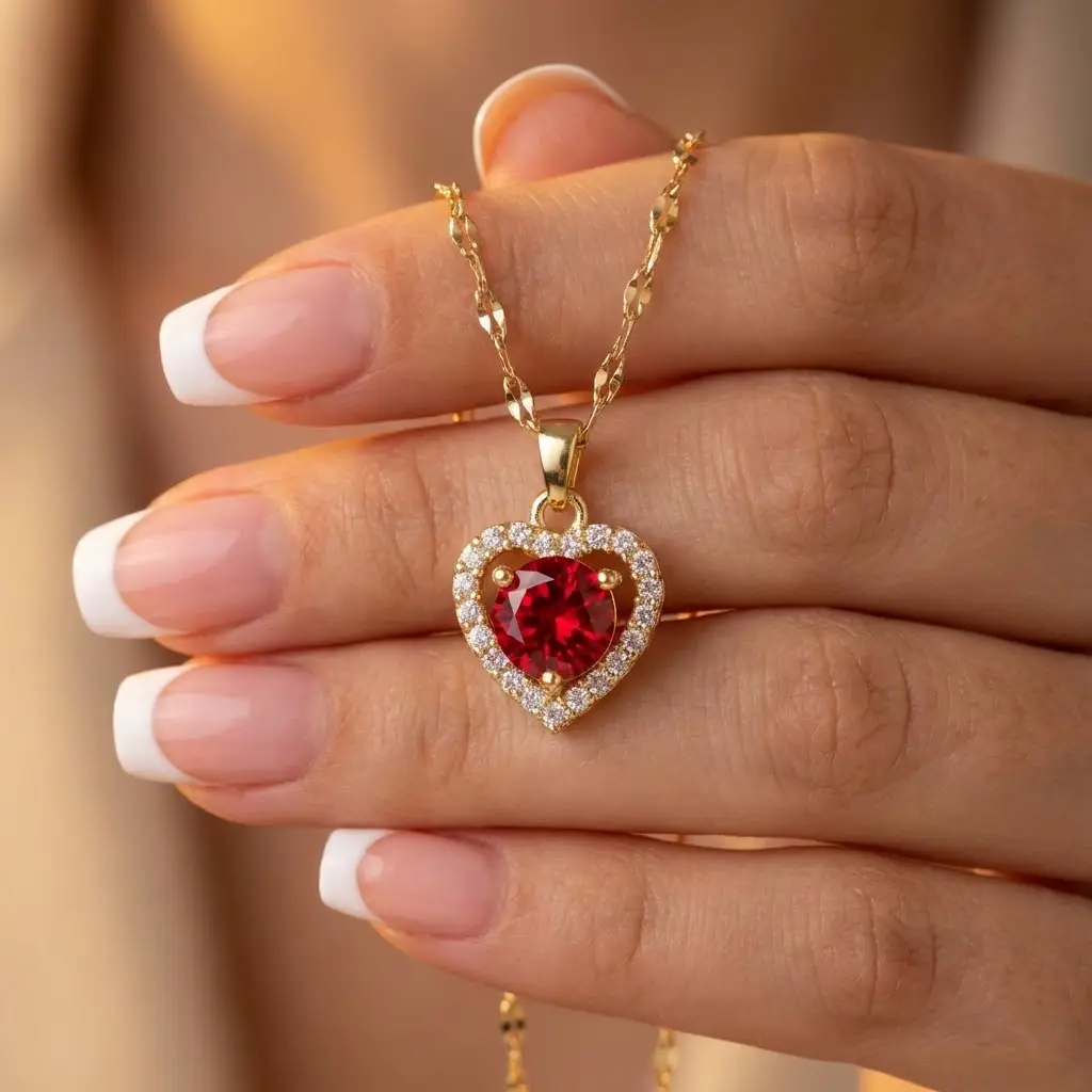 Oceń Złoty naszyjnik serce z czerownym kamieniem PREMIUM - stal chirurgiczna i pomóż innym w wyborze.